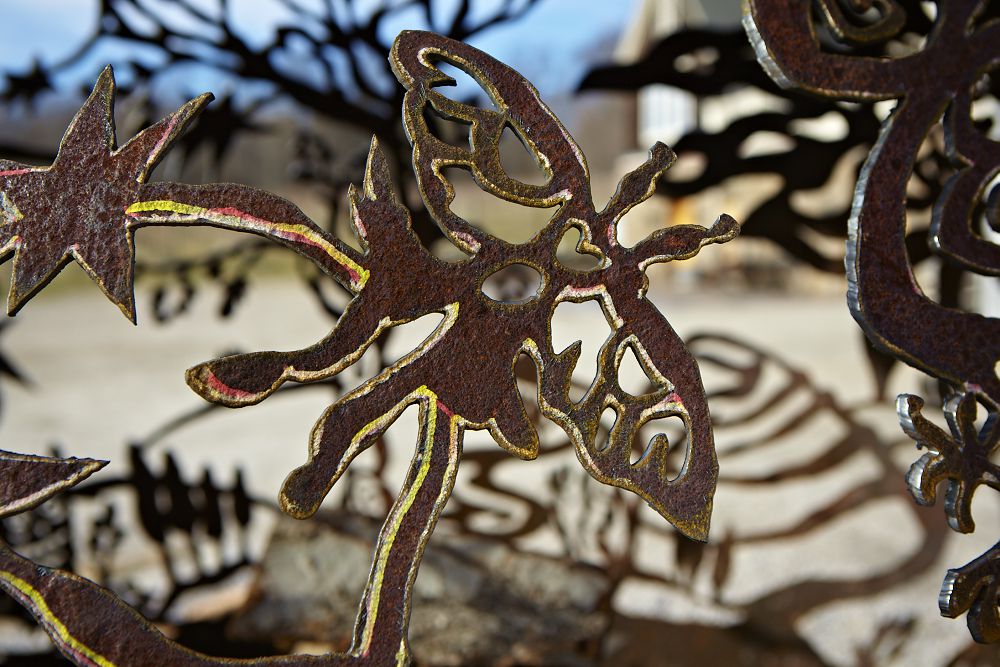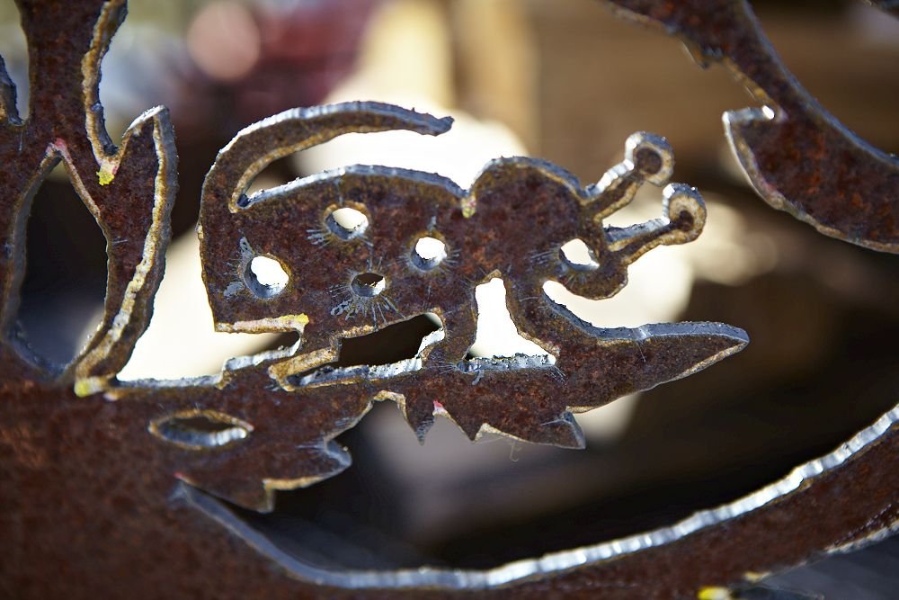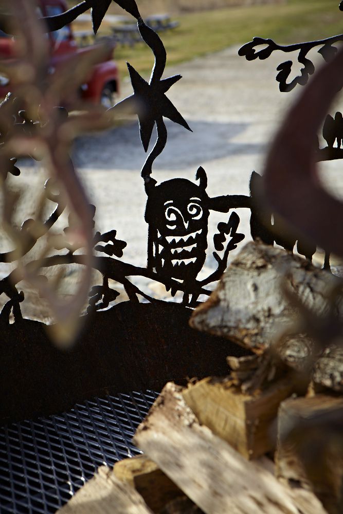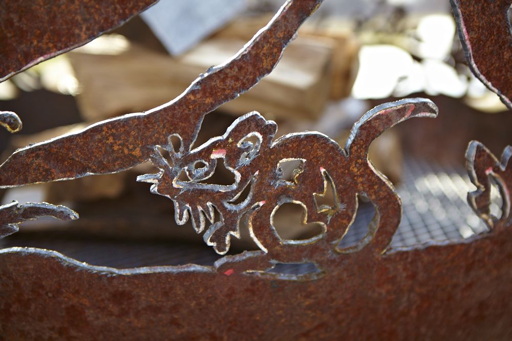 This ‘Harvest Moon’ Fireball is 58” in diameter and designed to be wood-burning. The finish is natural and weather-worn.